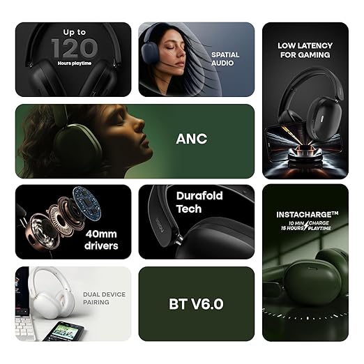 Noise Newly Launched Airwave Max XR Wireless Over-Ear Headphones with 120H Playtime, ANC, HFA Tech, Spatial Audio, Dual Pairing,BT V6.0(Pearl Beige)